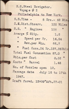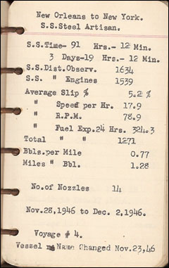 notebook of what appears to be a "sailing log", two pages of which I have attached.