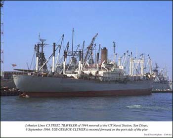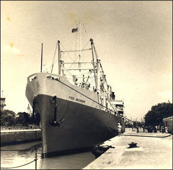 "My name is Mary I. Floyd, widow of K. Lawrence Floyd. We were passengers on the Steel Rover enroute to Indonesia the day we were fired on from somewhere? outside of Hong Kong. We were standing on deck with another passenger who was a State Dept. employee. We thought we were the targets in our white clothes. Our ship returned to Hong Kong and left the next day with a British Navy escort. We were carrying cargo of jeeps to Indo China, which we thought was the reason for the gunfire. Apparently they were just playing around, but made the mistake of firing on the British destroyer, which fired back and ended their fun! When we arrived in Saigon, we were escorted overhead and also had Foreign Legion soldiers on board the 4 hours (I think) up the river to Saigon. I am now 91 years old but that is a day I haven't forgotten!" |