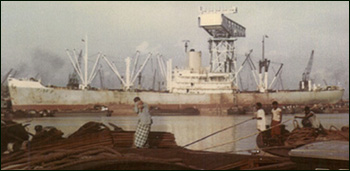 8/30/50: On voyage Baltimore to Port Swettenham with military cargo, 3 miles outside Hong Kong harbor outbound for Saigon at 1120, fired upon by two unidentified motor junks causing superficial shell fragment damage. Vessel returned to Hong Kong.