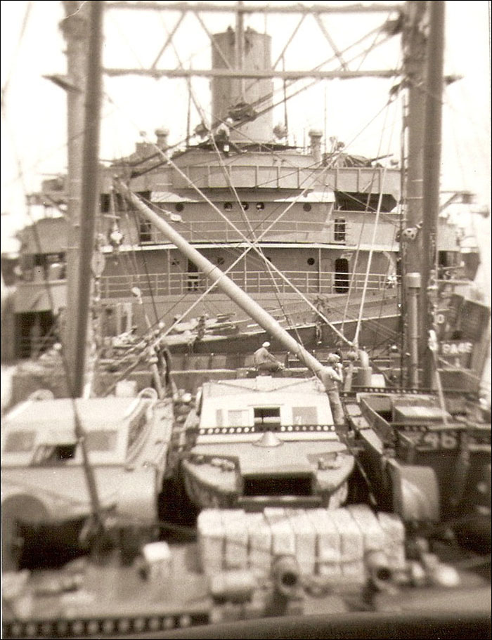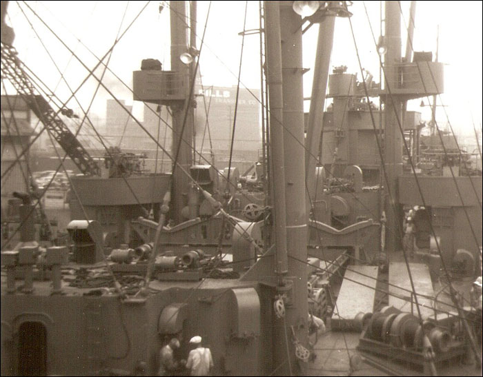 11/28 - 12/1/52: Heavy weather, voyage Singapore for New York. Partially renew 1 shell plate, weld deck plate and fair 1 cargo boom at Baltimore.